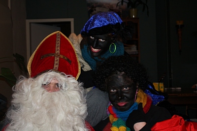 Hoe geef je dat door? Heel simpel. Je koopt een mijter, een nepbaard en wat verkleedkleren en je vult een jutezak met snuisterijtjes en chocoladeletters. En dan ga je op pad. Ik heb het zelf niet gedaan, dit jaar, maar een paar huisgenoten wel, en daarom mag ik erover opscheppen. Het was maandagavond, 5 december, en donker. Daar gingen ze, in vol ornaat, op bezoek bij een tiental families aan ons plein die wel een beetje blijdschap konden gebruiken.