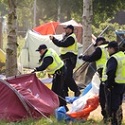 Nu wil het ongelooflijke toeval dat mijn ouders er wel waren. Precies op het moment van ontruiming. Ze kenden een paar Iraniërs en wilden ze opzoeken, zonder radicale bijbedoelingen, en waren 's ochtends via het weiland in het kamp gekomen. Zij hebben ook een verhaal, maar wel een heel andere versie.