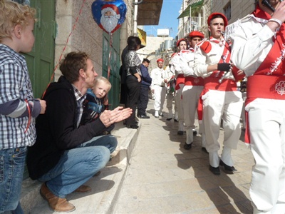 Met kerstmis was er een grote optocht van misschien wel honderd kerkelijke scoutgroepen uit de hele West Bank die door Bethlehem marcheerden, compleet met trommels, doedelzakken en dansmariekes. En je kon er grote ballonnen krijgen in de vorm van een kerstman.