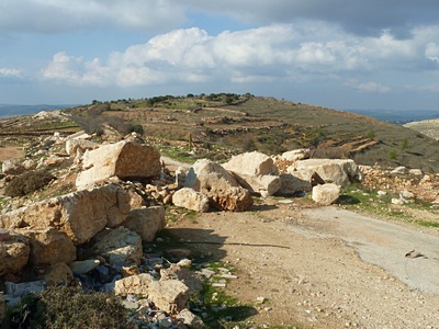 De wegversperring, met op de achtergrond het land van de familie Nassar (foto: Frank Mulder)