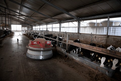 Bij een zogenaamde draaimelkstal staan de robots in het midden, zodat de looproutes niet te lang worden. Alles is precies uitgekiend, zegt Schaap: ‘Dat moet ook, want een koe is eigenlijk gewoon een fabriekje. Vooral de voeding is heel belangrijk. Niet alleen de brokken die ze krijgen, maar ook het gras. Omdat ik 140 hectare heb, heb ik genoeg aan alleen het voorjaarsgras.’ Hij krijgt wel eens mensen uit China op bezoek, die jaloers zijn op zulk goed gras. ‘Pas had ik er een paar, die stopten het zelfs in hun mond om te proeven! Ik stond met open mond te kijken.’ Ze zijn slim, de Chinezen, ze gaan alles kopiëren.
