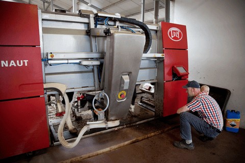‘Maar Gerrit, wat ga je doen als de melkprijs drie jaar lang te laag blijft?’ vraagt zijn buurman. Dat is een lastige, vindt Schaap: ‘Ik heb er wel eens over gepraat met mijn boekhouder. De kosten zitten vooral in diesel, voer en rente. Daar kun je weinig aan doen. En in arbeid. Ik heb twee man in dienst. De boekhouder zegt: kan er niet eentje wat harder lopen, zodat de ander weg kan? Daar zal het uiteindelijk wel op uitlopen. Ik heb nu twee kavels, dat kan nog wel wat efficiënter. Wat niet helpt is dat ik steeds meer externe organisaties nodig heb, voor certificeringen en dergelijke. Alleen al de jaarlijkse inspectie van de melkrobots kost zesduizend euro. Het enige wat ik kan doen, is groter worden. Er kan nog een extra robot bij.’