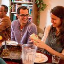 Terwijl ik een handje goedkope pinda’s neem, kijk ik de groep eens rond. Wat een maffe mix mensen zit hier weer bij elkaar. Een Marokkaanse man, al jaren kind aan huis, vertelt een mop waar hij – zoals gewoonlijk – alleen zelf om moet schaterlachen. Een 75-jarige Amerikaan, die elke week onze planten bewatert, creëert een overstroming op de vensterbank.